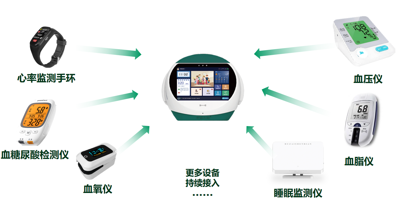中南小雅数字健康监测终端,集成心率监测手环实现24小时不间断心率追踪,血糖尿酸检测仪确保精准测量,指夹型血氧仪与血压检测仪实时守护呼吸与循环系统健康,血脂仪提前预警动脉硬化等心脑血管疾病。此外,无感睡眠监测功能每日生成报告,同步至小雅终端及APP,全方位、全天候为您的健康保驾护航。
